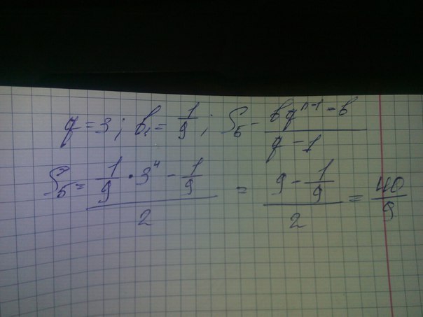 Bn)-Геометрическая прогрессия,знаменатель прогрессий равен 3,b1=1/9 найдите сумму первых пяти её членов!