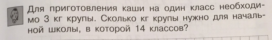 Для приготовления каши на один класс необходим мс 3 кг Сколько кг крупы нужно для начал ной школы в которой 14 классов