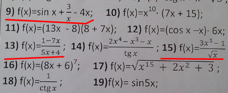 15) f'(x) =( 3x^4*√x - (3x^5-1)*1/(2√x))/x.