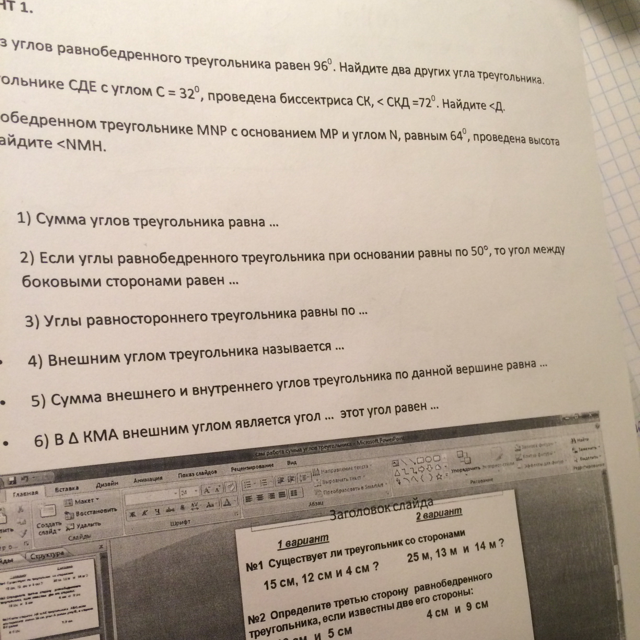 раз равнобедренный, то два угла равны. по условию 50. то сумма 100.