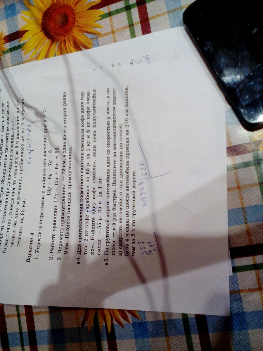 d) за 4 часа езды по шоссе автомобиль проехал на 270 км больше, чем за 2 часа по грунтовой дороге.