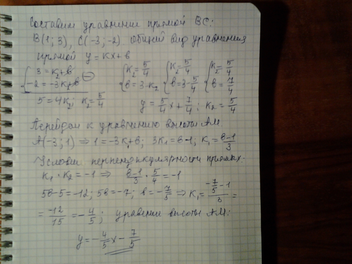 дан треугольник ABC с вершинами точками A (-3:1) B (1:3) C (-3:-2) составить уравнение высоты AM