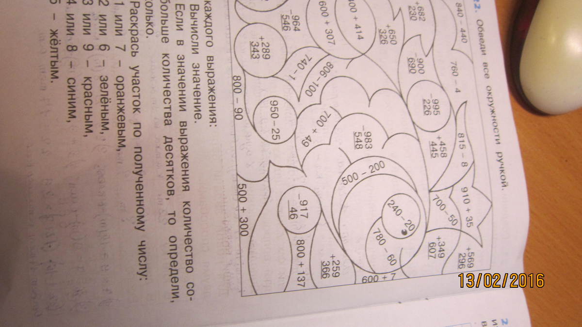 Сначала нужно посчитать , затем из сотен вычесть десятки, ну и раскрашивать . Вот Вам подсказка: