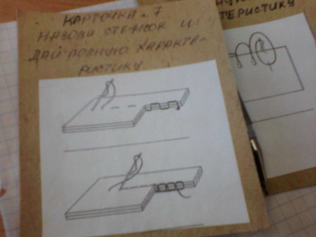 Стежок-расстояние между двумя проколами иглы Первый стежок -шов вперед иголку.относится к простым швам.В данное время применяется как для временного соединения ткани так и для пошива мелких игрушек. Применяется так же для выполнения вышивки.Второй рисунок-стежок-шов назад иголку относится так же к простым швам..Применяется как для пошива изделий (иммитирует машинный шов) так и для вышивки контурных линий .
