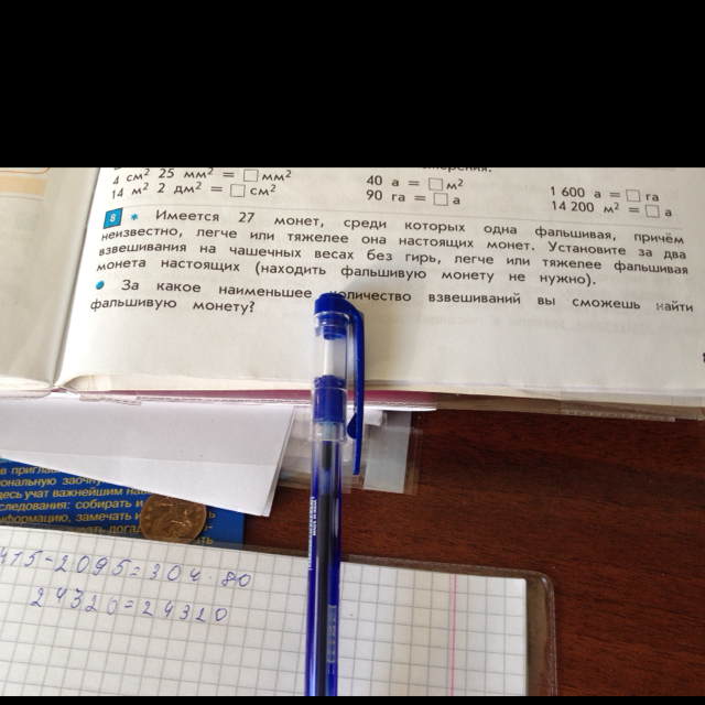 Разделяем эти монеты на 3 кучки!Каждую взвешиваем,если одна из них оказалась менььше/больше,чем другая,значит там фальшивая монета, и 2 взвешивание берем ту которая больше или же меньше и разбиваем еще по 3 и взвешиваем 2 из них так и определить сколько весит фальш монета, и какая она