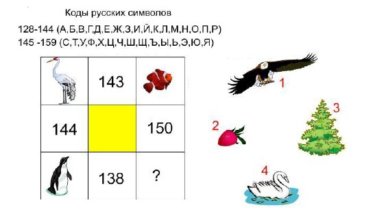 Выбери номер изображения, которое должно занять свое место в таблице вместо знака вопроса)