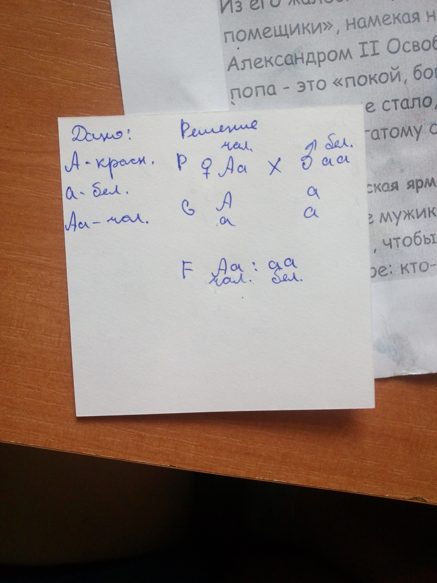 При скрещивании красных коров с белым быком все телята оказываются чалыми. При скрещивании чалых коров с чалым быком получили 10 красных телят, 19 чалых и 9 белых. Какое потомство, и в каком соотношении можно получить от скрещивания чалой коровы с белым быком?