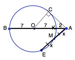 радиус окружности равен 7 см секущая проведенная из точки находящейся на расстоянии 9 см от центра делится окружностью пополам. Найдите длину секущей