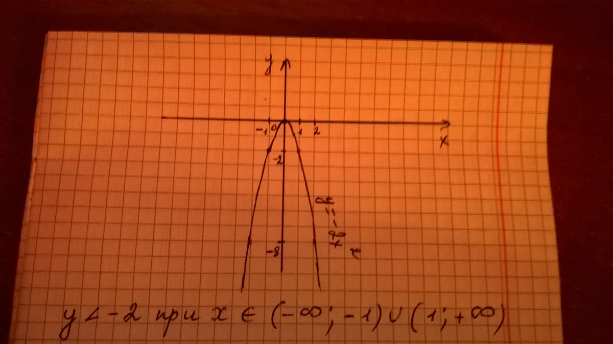 постройте график функции y= -2x в квадрате с помощью графика найдите значение аргумента при которых y< -2