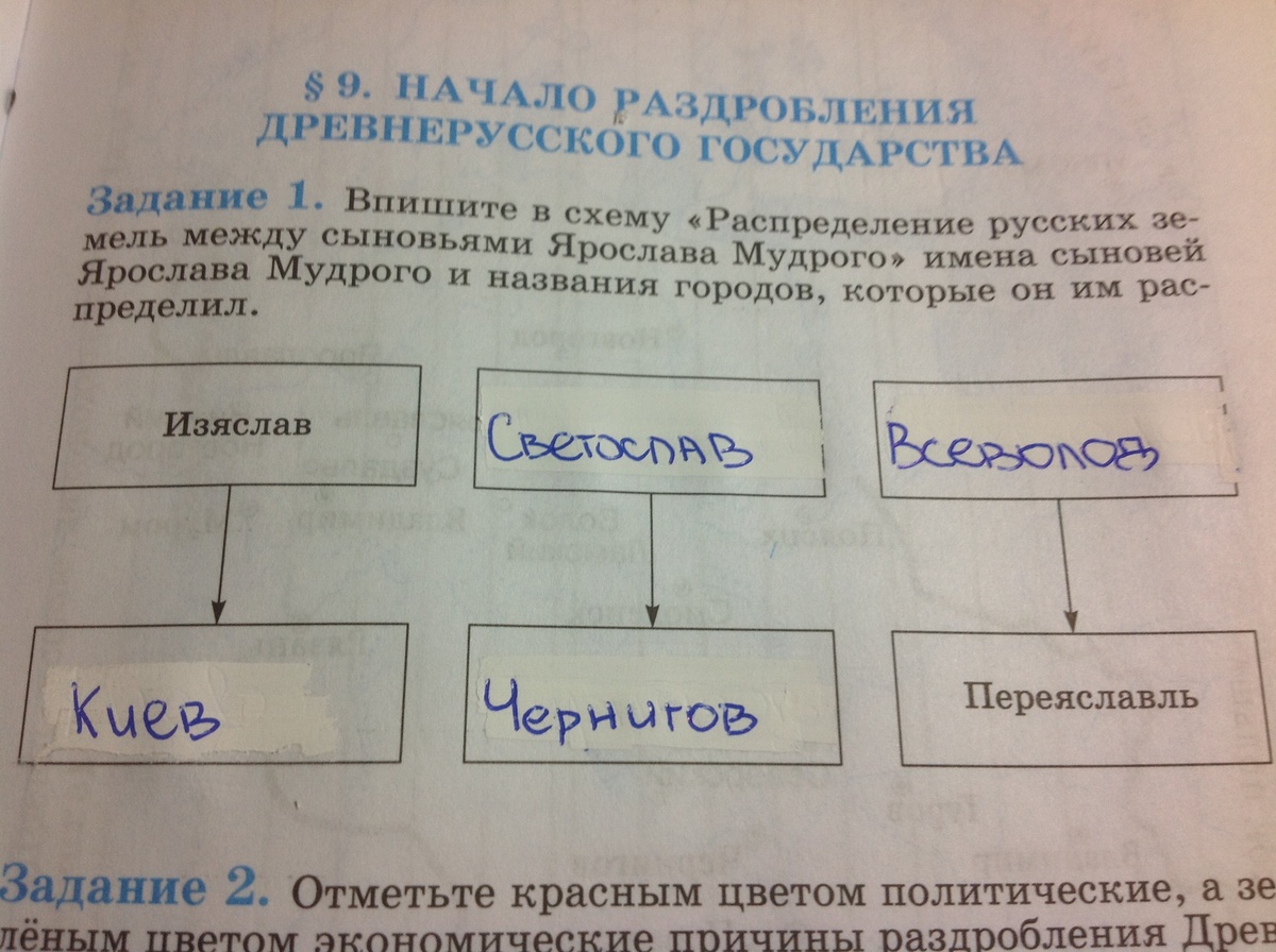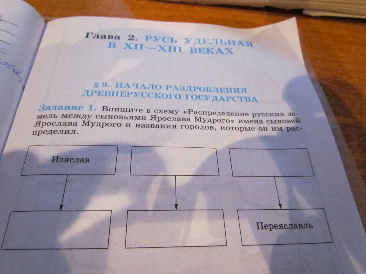 Впишите в схему "Распределение русских земель между сыновьями Ярослава Мудрого" имена сыновей Ярослава Мудрогои названия городов, которые он им распределил.