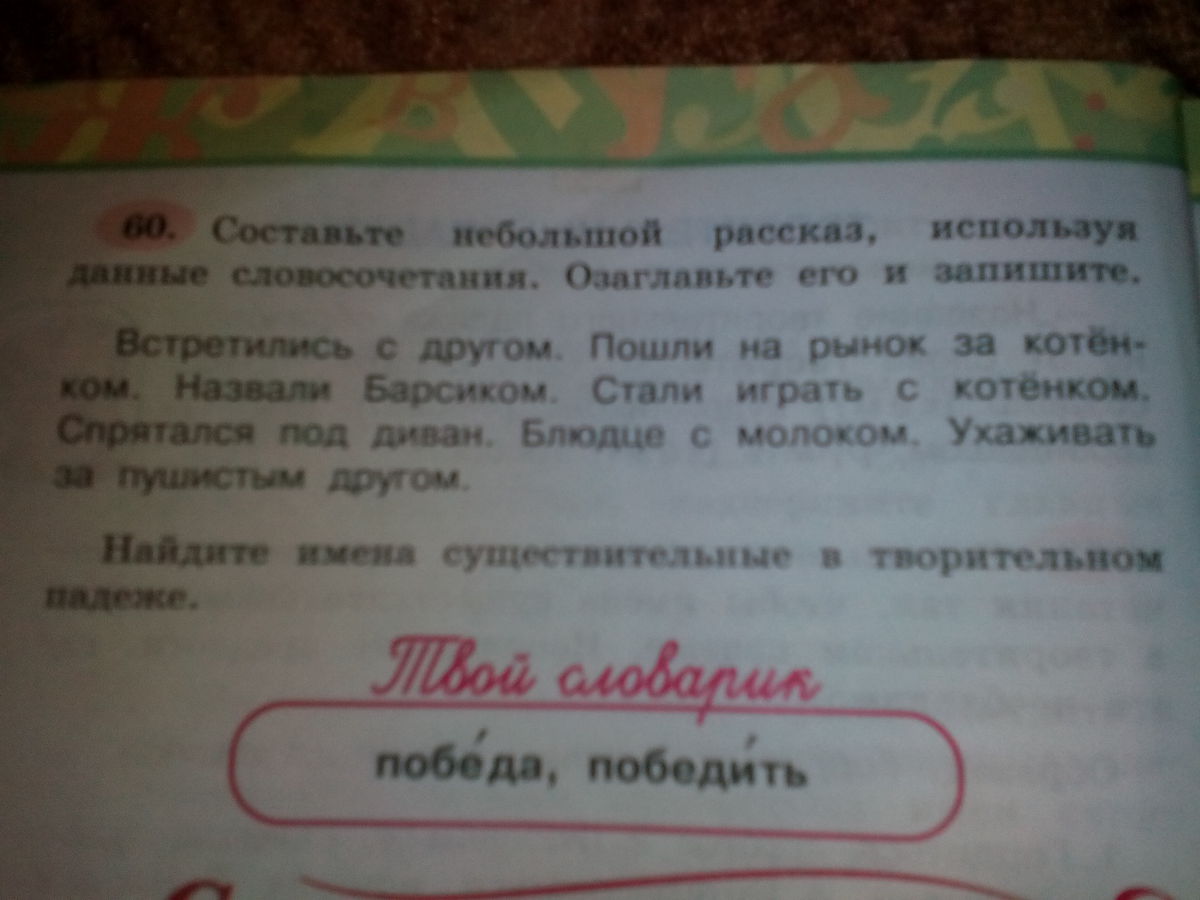 Составьте небольшой рассказ, используя данные словосочетания. Озаглавьте его и запишите.