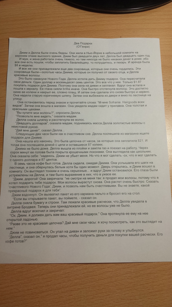 "Д-да"-Кивнула головой девушка, все еще стоявшая в шоке от услышанного. Джим, как и она, пожертвовал тем, чем очень гордился. Это было очень приятно для Деллы. Джим тоже был доволен поступком своей жены. Они оба понимали, как важны друг для друга. Настолько, что готовы пожертвовать самым дорогим. Они провели этот вечер в теплом уютном кругу, обсуждая поступки друг друга...