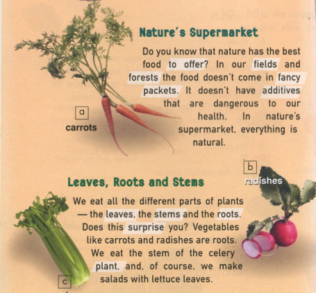 Мы едим все различные части растений: листву, стебли и корни. Это удивляет вас? Овощи, такие как морковь и редис - корни. Мы едим стебли сельдерея, и, конечно, мы делаем салаты с листвой капусты.