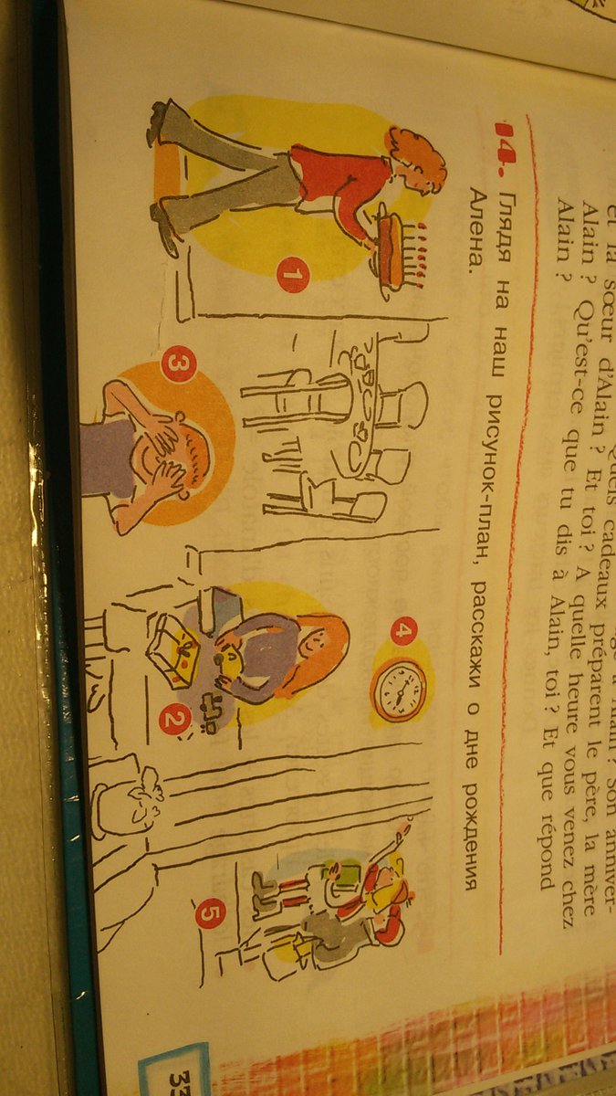 глядя на наш рисунок-план,расскажи о дне рождения Алена.