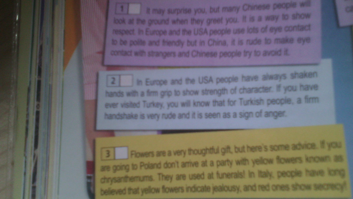 2) В Европе и США люди всегда крепко пожимают руки друг другу, демонстрируя твердость характера. Если вы когда-либо были в Турции, то знаете, что там крепкое рукопожатие считается грубым и воспринимается как проявление агрессии.