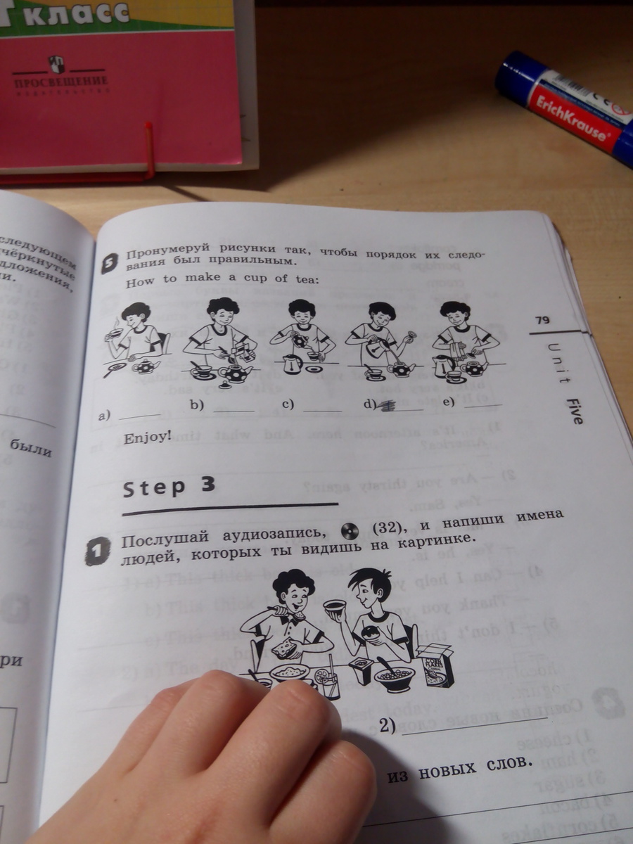(b) это 1,(d) это 2,(e) это 3,(c) это 4,(a) это 5.