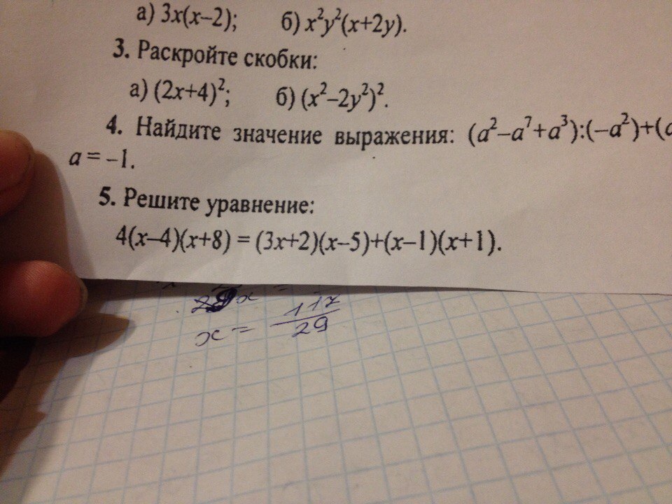 4(x-4)(x+8)=(3x+2)(x-5)+(x-1)(x+1); раскрываем акзде скобки