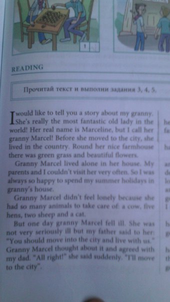 хотел бы рассказать вам историю о бабушке. Она действительно самый фантастическая старушка в мире! Ее настоящее имя Марселин, но я называю ее бабуля Mарсель. Прежде чем она переехала в город, она жила в стране. Круглый ее красивой ферме было зеленая трава и красивые цветы Бабушка Марсель жила одна в своем доме, Мои родители и я и не могли посещать её очень часто Но я всегда так рад провести свои летние каникулы в доме у бабушки. Бабушка Марсель не чувствует себя одинокой, потому что она была не одна так как у неё много животных, чтобы заботиться о корове, двух овец и кошки. Но однажды бабушка Марсель заболела. Она была б не очень серьезно больна, но мой отец сказал ей, что ты должна двигаться в город и жить с нами, бабушка Марсель подумала и согласилась с моим папой.Ладно, я буду двигаться к городу