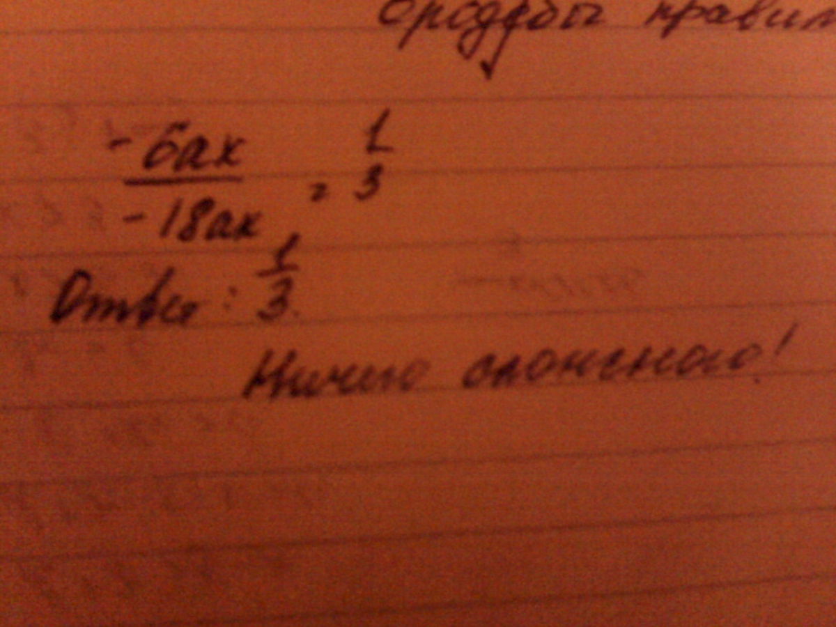 -6ax/(-18ax)= 1/3ax сокращаются, - на - даёт +