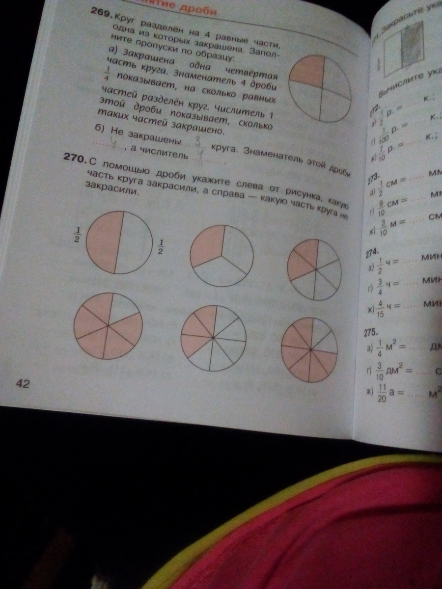 с помощью дроби укажите слева от рисунка какую часть круга закрасили,а с права-какую часть круга не закрасили(помогите плизз)
