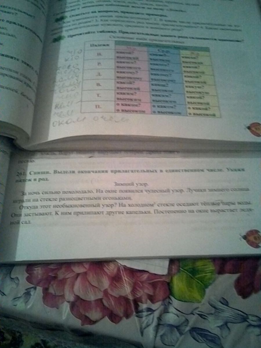 спиши выдели окончание прилагательных в единственным числе . Укажи падеж и род ...(За ночь сильно похолодало. На окне появился чудесный узор. Лучики зимнего солнца играли на стекле разноцветными огоньками. Откуда этот необычный узор? На холодном³ стеклет оседают тёплые пары воды. Они застывают . Кним прилетают другие капельки . Постепенно на окне вырастает ледяной зад.. ) это текст ..! всё не надо