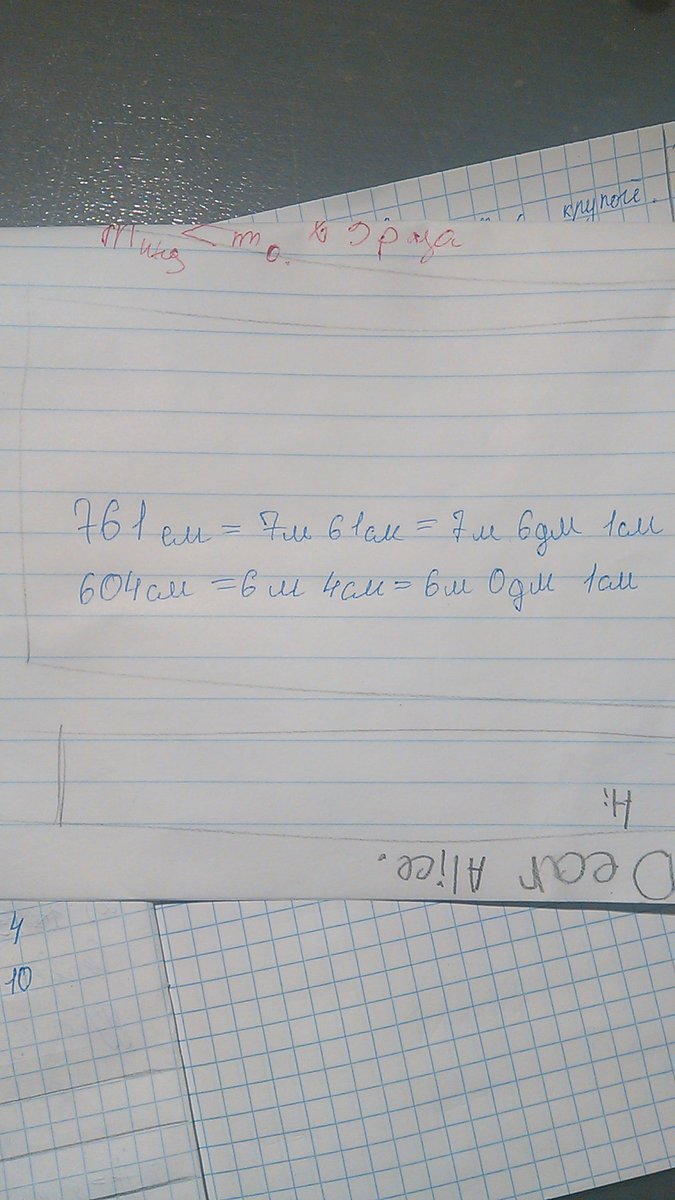 761см=7 м61см=7м6дм1см 604см=6м1см=6м0дм1см