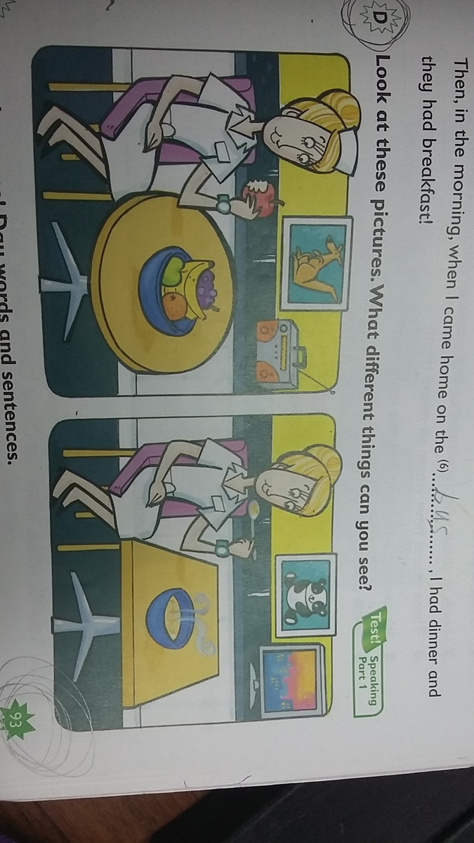 Table, chair, fruits, radio, TV, bowl, plate