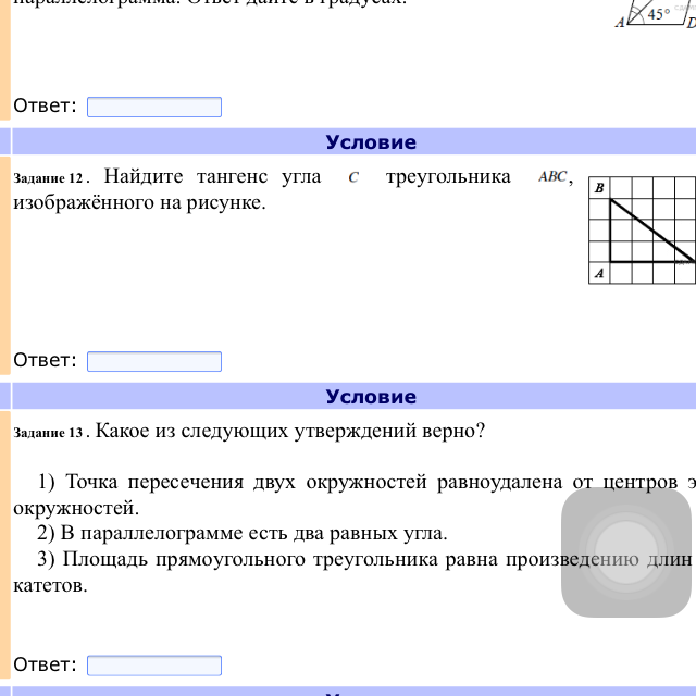 тангенс-отношение противолежащего катета к прилежащему,значит тангенс данного угла 3/4