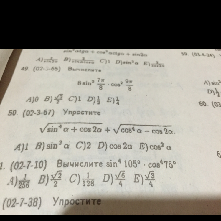 sin^4 a + (1 - 2 sin^2 a) = sin^4 a - 2 sin^2 a + 1 = (sin^2 a + 1)^2 - свернули сумму квадратов;