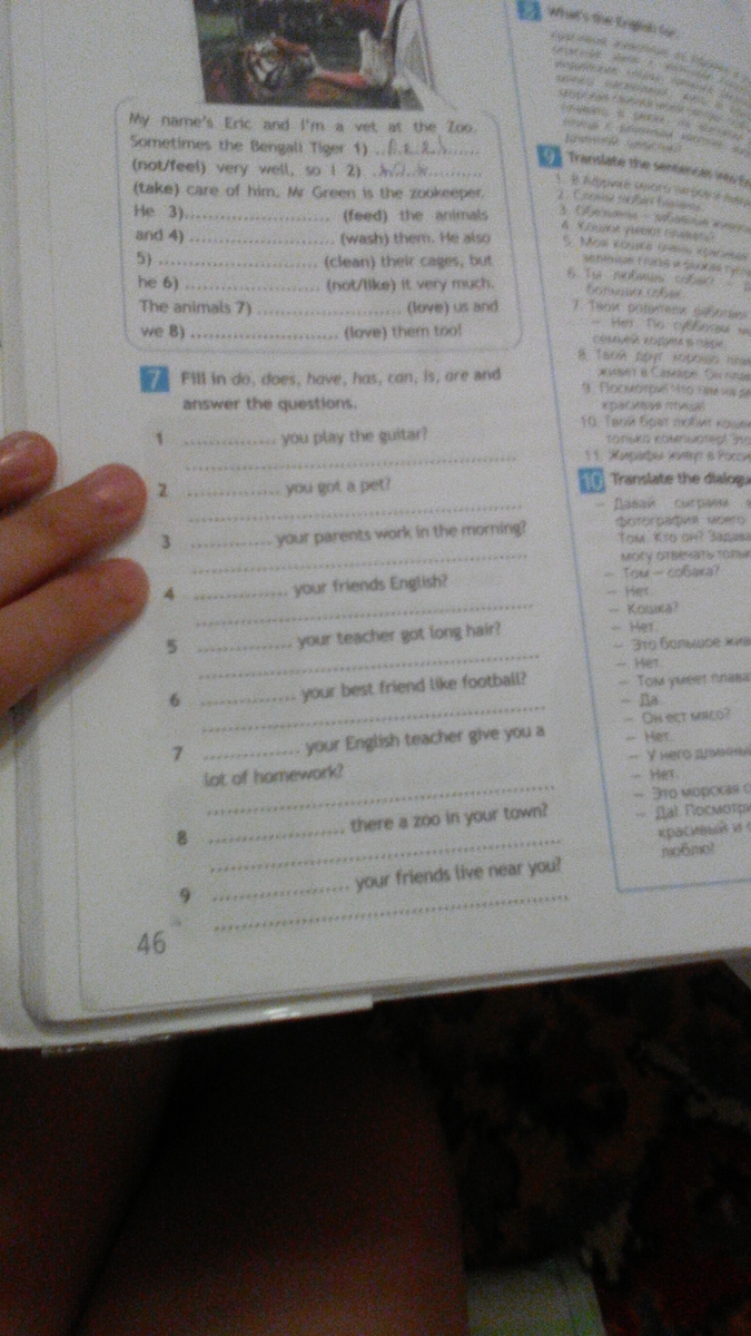 1. Does not feel 2 take 3 feeds 4 washes 5 cleans 6 doesn't like 7 love 8 love