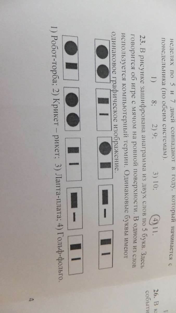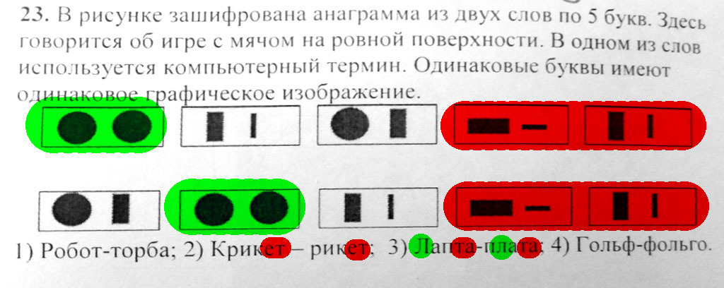 в рисунке зашифрована анаграмма из двух слов по 5 букв здесь говорится об игре с мячом на ровной поверхности в одном из слов на ровной поверхности в одном из слов используется компютерный термин одинаковые буквы имеют одинаковое графическое изображение робот торба крикет рикет лапта плата гольф фольго