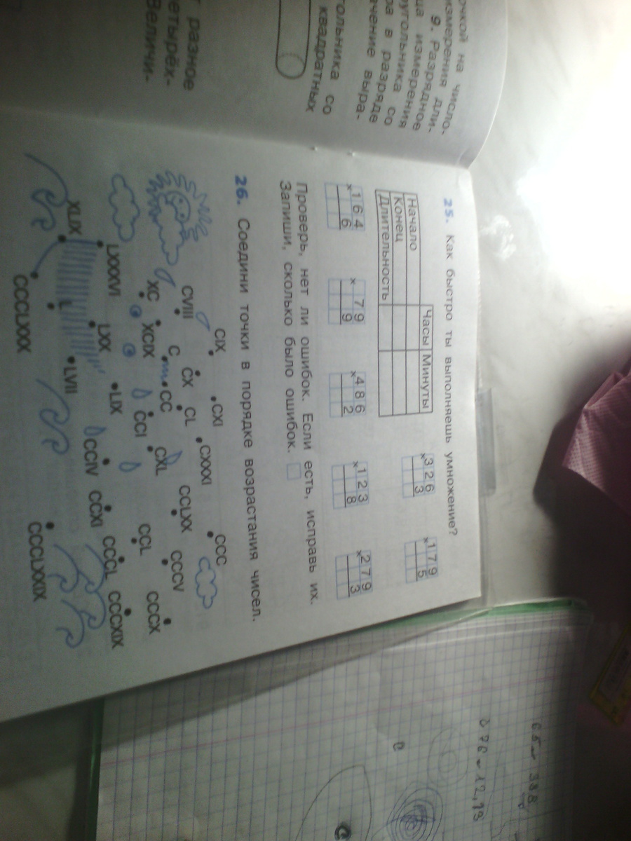 ответы на номер 25 во вложении. умножать начинаешь с последней цифры