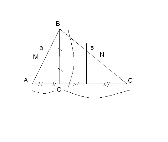 MN - линия сгиба (средняя линия), т.В переходит в т. О основания АС;