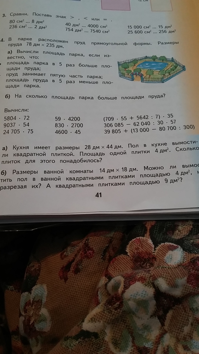 б)86650-17330=69320(дм2)- парк больше пруда.