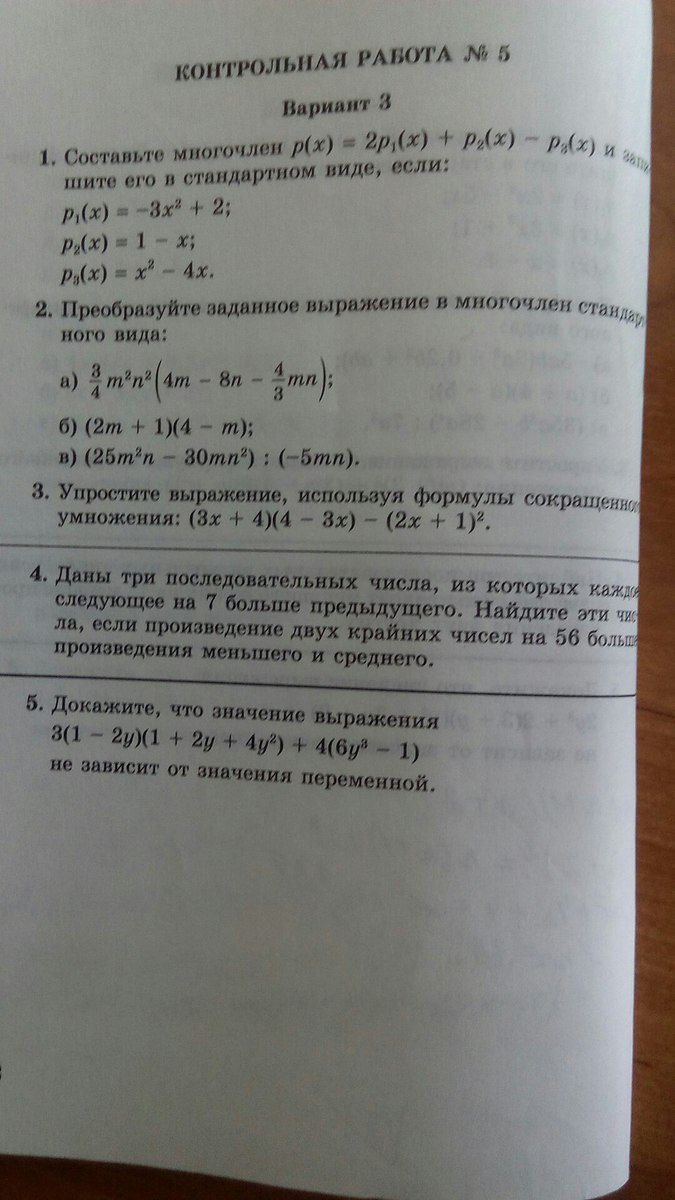 3. (3х + 4)(4 - 3х) - (2х + 1)^(2)= (4 + 3х)(4 - 3х) - (4х^2 + 4х + 1) = 16 + 9х^2 - 4х^2 - 4х - 1 = 16 + 5х^2 - 4х - 1