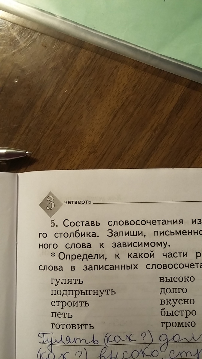 Определи к какой части речи относятся зависимые слова в записанных словосочетаниях. (слова написанны на фото в столбик)