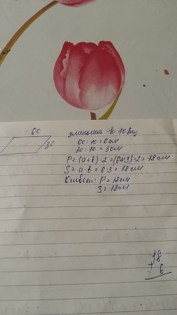 Размеры платка имеющего форму прямоугольника равны 60 см и 30 см Уменьши размеры прямоугольника в 10 раз Вычисли периметр и площадь Первого и второго прямоугольников(30 Баллов)