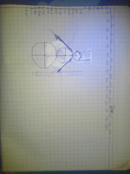 Program BP;Uses graphABC;Begincircle(320,350,100);circle(325,190,60);circle(330,100,30);Rectangle(310,72,350,20);line(280,150,160,200);line(370,150,480,200);Rectangle(480,15,510,340);line(480,340,495,380);line(495,380,510,340);end.