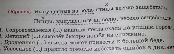 "курильщиком")спичка может привести к большой беде. б) Спичка,брошенная куда попало,может привести к пожару. а)Усвоенное учеником правило... б)Правило,усвоенное учеником,помогло...