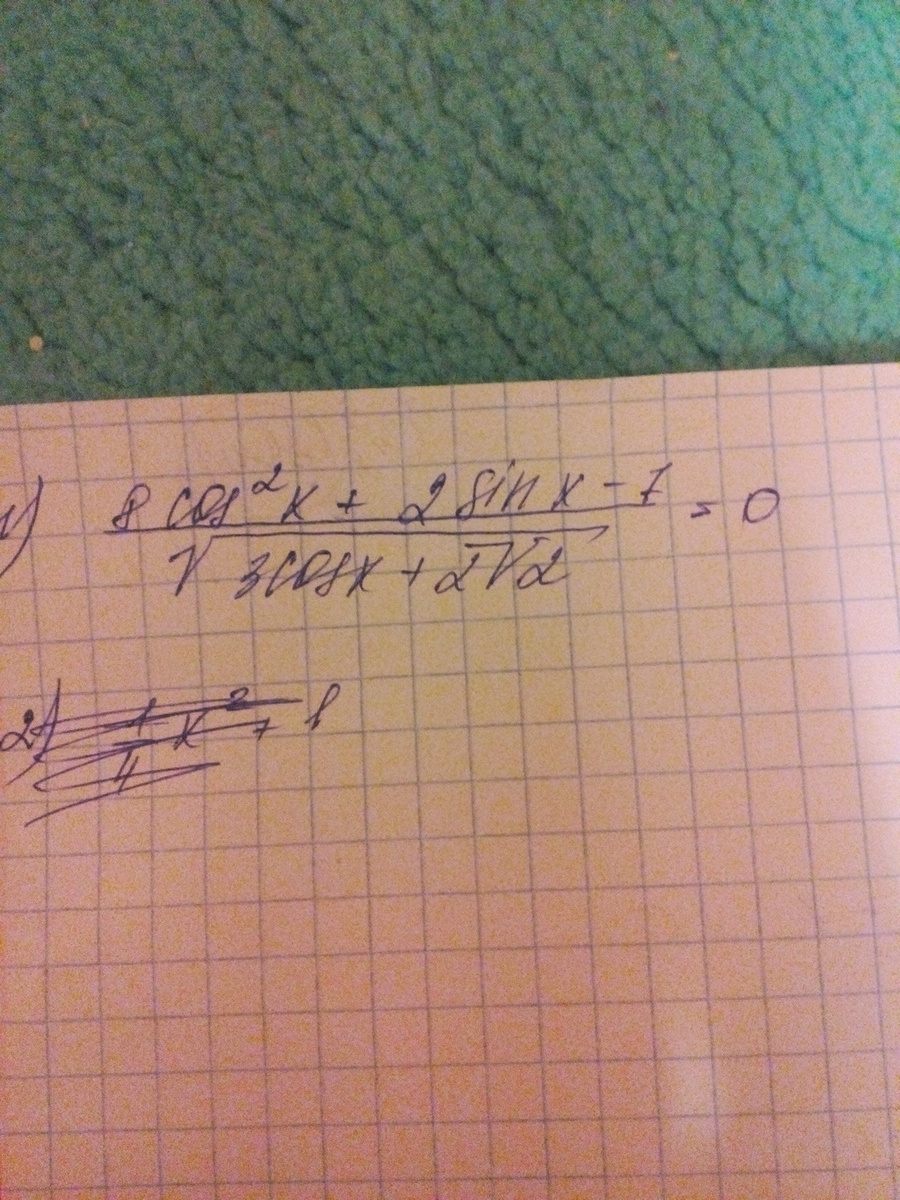 8cos^2_x + 2sinx - 7 = 0, 3cosx + 2√2 > 0;