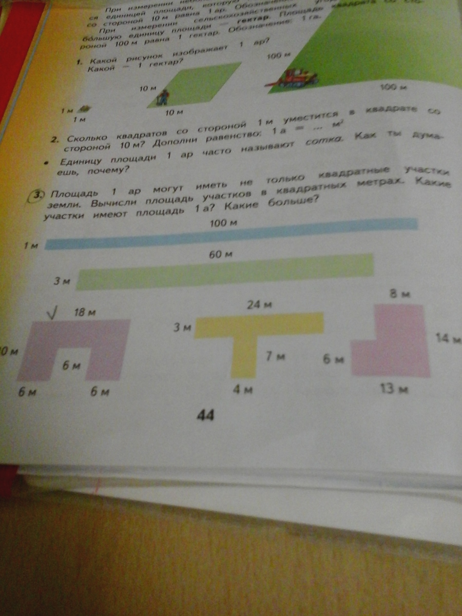 площадь 1 ар могут иметь не только квадратные участки земли. Вычесли площадь участков в квадратных метрах.Какие участки имеют площадь 1 а?Какие больше?