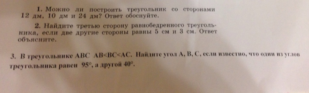 1 . нет нельзя. потому что 24 слишком длинная сторона получится. если даже 12+10 = 22. а 24 больше чем 22