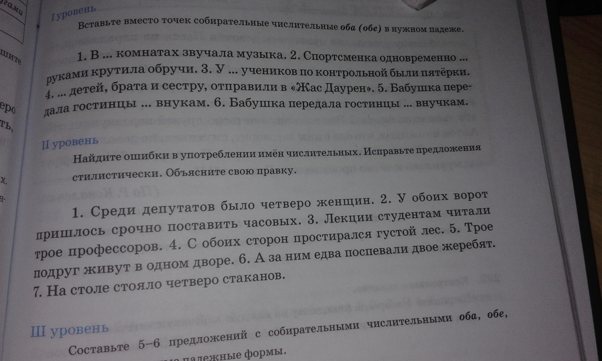 1)три женщины;2)правильно всё;3)три профессора;4)с обеих сторон;5)три подруги;6)правильно;7)четыре стакана