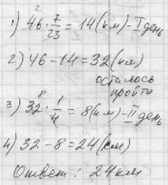 2)(46-14):4=8(км) - проплыл в 2 день катер.