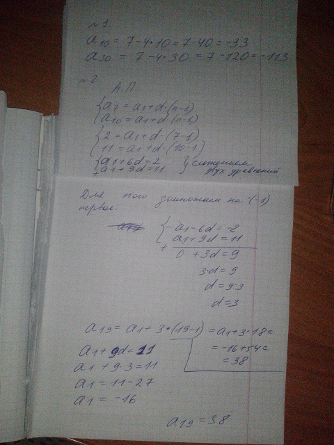 И ещё одно задание : В арифметической прогрессии a7=2 и a10=11. Найдите a19