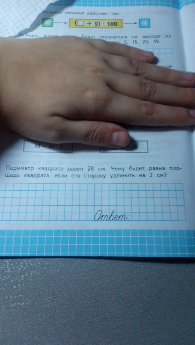 Периметр квадрата равен 28 см. Чему будет равна площадь квадрата , если его сторону удлинить на 2 см