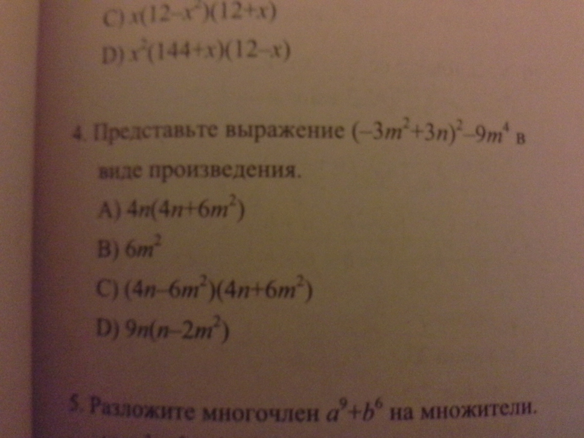 (-3m²+3n)²-9m⁴ = -9m⁴+9n²-9m⁴ =9(n-2m²)