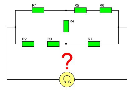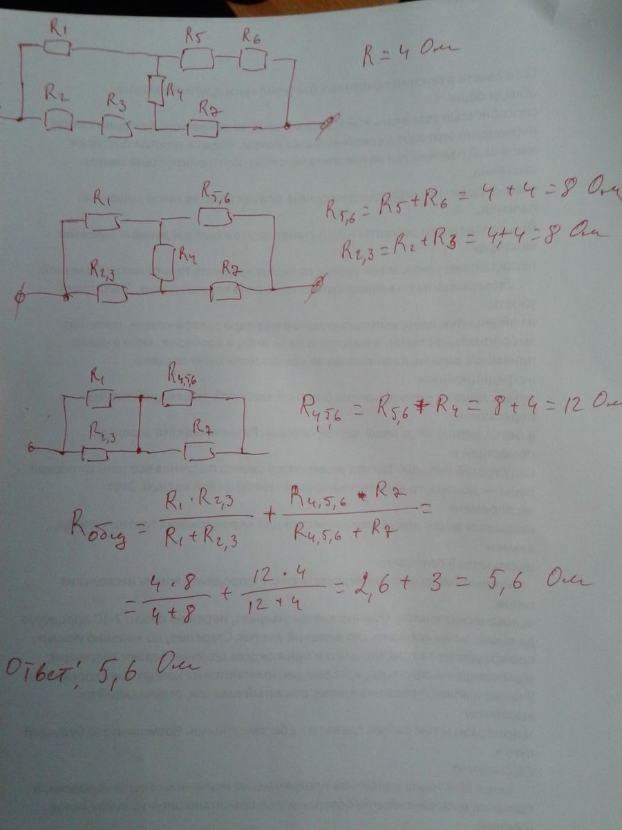 Какое сопротивление должен показать омметр, если сопротивление каждого резистора равно 4 Ом?
