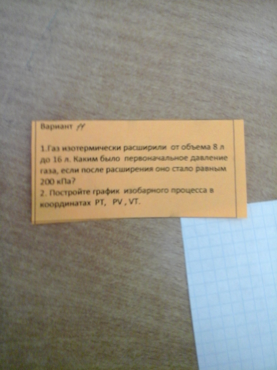 V1=8*10^-3 м3 V2=16*10^-3 м3 p2=2*10^5 Па T - const р1=?