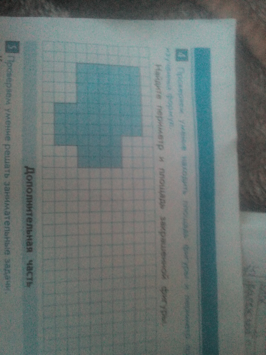 Ребята,помогите мне найти периметр и площадь закрашенной фигуры.Пожалуйста плиззз.Нажмите на фото!